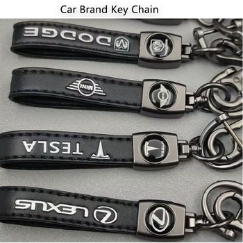 Porte-clés de voiture en cuir véritable avec logo en métal Porte-clés en cuir de luxe